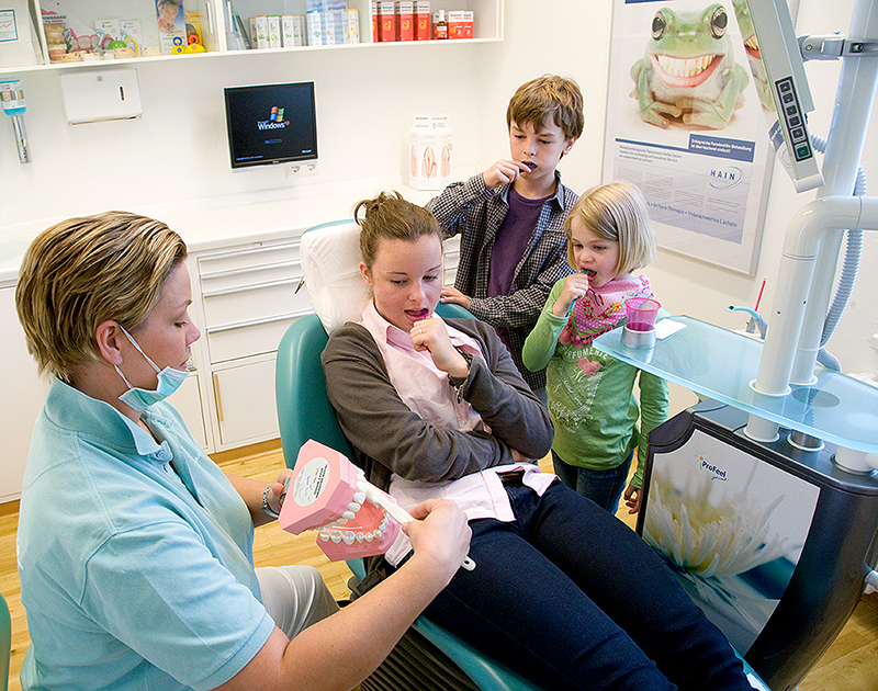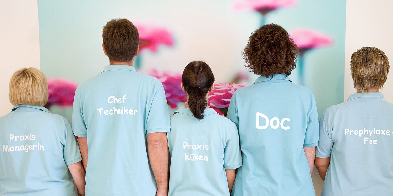 Gewünscht waren Aufnahmen des gesamten Team in der Praxis, Aufnahmen der Praxisräume, verschiedene Arbeitssituationen, sowie Einzelaufnahmen im Studio mit Hintergrund in CI-Farbe